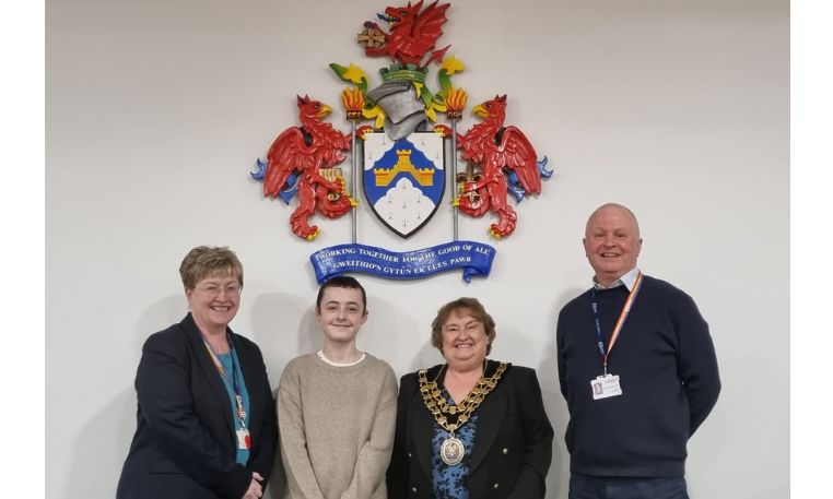 Morgan Daniel, aged 12 and from Nelson, was invited on a private tour of Caerphilly County Borough Council’s Penallta House headquarters to celebrate him winning a train naming competition .